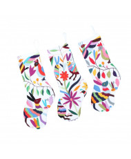 Esta hermosa pieza de decoración para las fiestas decembrinas, elaborada en la región Otomi de Xilepa, Pahuatlan, Puebla, es el regalo perfecto gracias a su detallado bordado que utiliza colores vibrantes y la técnica tradicional de pata de gallo, presentando motivos como aves, animales y flores que resaltan en cualquier ambiente festivo. Cada bota es una demostración del talento y dedicación de las mujeres artesanas de la ESMAS Flor de mayo.