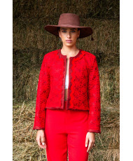 Pantalón pierna ancha y tiro largo, con sobre falda asimétrica y detalles con argollas inoxidables.
