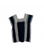 El Huipil de Tenango, confeccionado en lino y bordado en algodón está adornado con bordados en puntada de pata de gallo, que destaca por sus tonalidades azules. En el centro superior, un majestuoso diseño de un ave simboliza libertad y conexión con el mundo espiritual, mientras que flores en tonalidades azules decoran sutilmente tanto la parte superior como la inferior del huipil, evocando la fertilidad y la belleza de la naturaleza. Estos bordados no son solo decorativos, sino que tienen un profundo significado cultural, ya que reflejan la cosmovisión y tradiciones de la comunidad otomí de Tenango de Doria, Hidalgo.