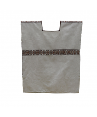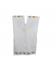 El Huipil de Tenango, confeccionado en lino y bordado en algodón está adornado con bordados en puntada de pata de gallo, que destaca por sus tonalidades multicolor. En el centro superior, un majestuoso diseño de un ave simboliza libertad y conexión con el mundo espiritual, mientras que flores en tonalidades multicolor decoran sutilmente tanto la parte superior como la inferior del huipil, evocando la fertilidad y la belleza de la naturaleza. Estos bordados no son solo decorativos, sino que tienen un profundo significado cultural, ya que reflejan la cosmovisión y tradiciones de la comunidad otomí de Tenango de Doria, Hidalgo.