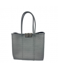 Una exclusiva bolsa de plástico reciclable que combina estilo, funcionalidad y un profundo compromiso con la cultura mexicana. Su diseño altamente duradero te asegura llevarla a cualquier lugar con confianza, mientras que sus detalles únicos la hacen verdaderamente especial. Un delicado corazón de cristal, ubicado en el extremo superior izquierdo, aporta un toque sofisticado, complementado por un suave pompón de seda que realza su elegancia. En el interior, una placa de acero con el emblema "Hecha por manos mexicanas" y el logotipo de la marca al frente de la bolsa destaca el talento y la artesanía local. Ideal para quienes buscan un producto artesanal que realce su estilo y enaltezca la rica cultura poblana.