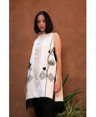 ENSAMBLE TETRAGONO Paño de lana, con detalles de figura bordados a mano frente y espalda.